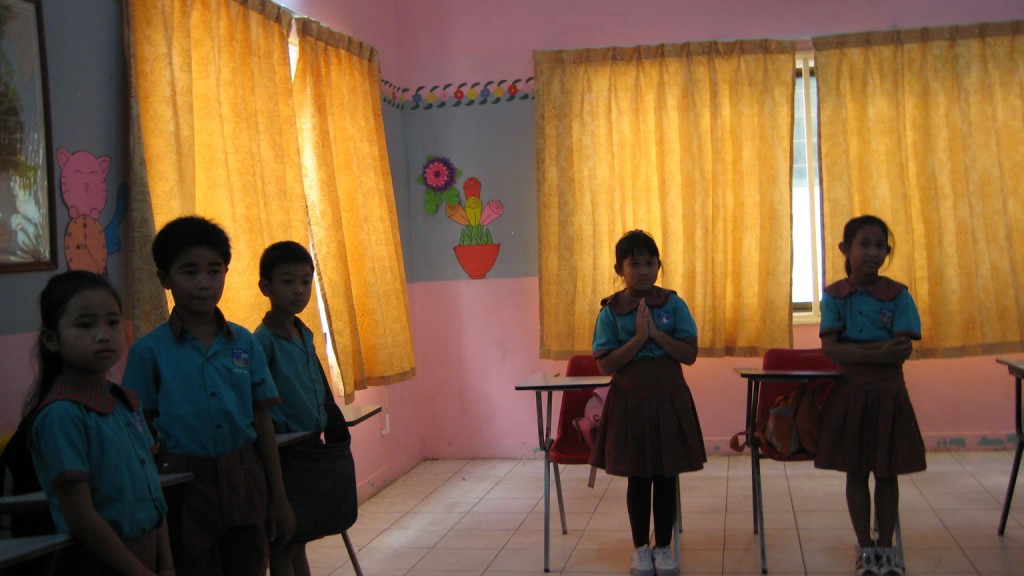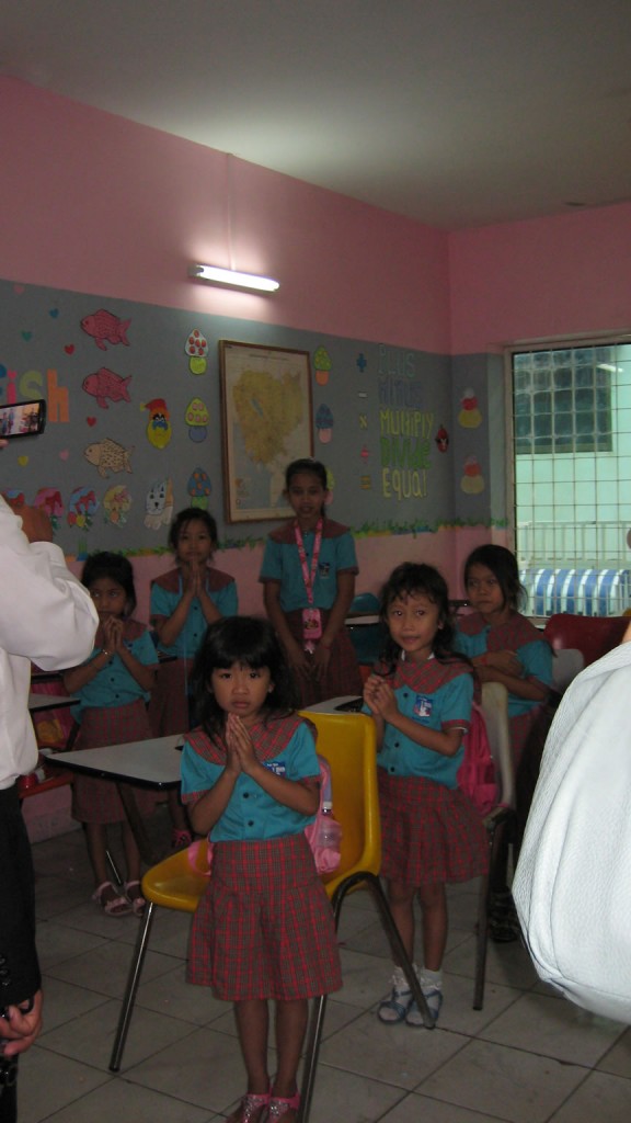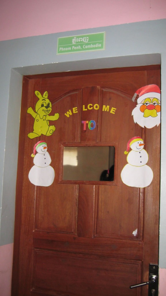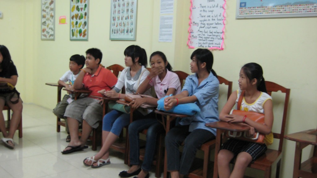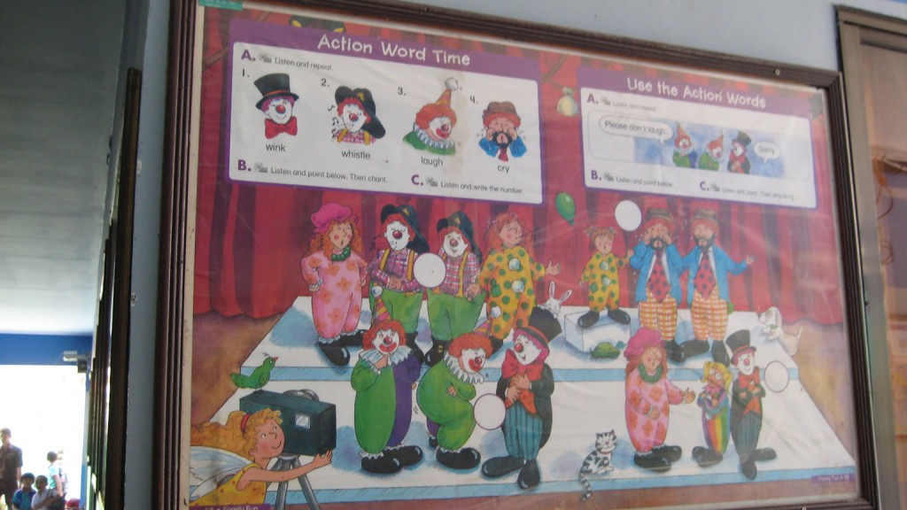 At the New York International School, the hallways included purchased posters, but most of the classrooms were decorated by teachers using handmade items. While the school had asked specific classes to stay late (the students attend the school in the morning and a public Khmer school in the afternoon), we had open access to those 6-8 classrooms. As a result, I had an extended discussion with an intermediate level class with students ranging in age from 7 to 11.